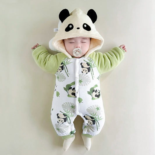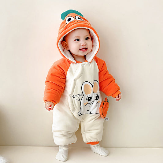 The new cotton padded cotton baby romper thickened chinchilla hooded cotton baby Onesies newborn go climbing clothes