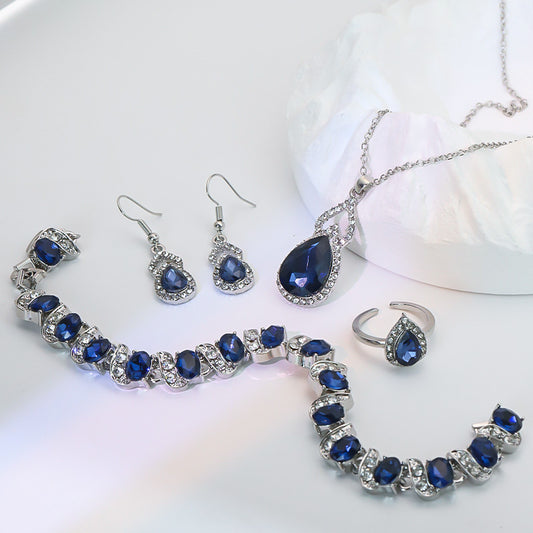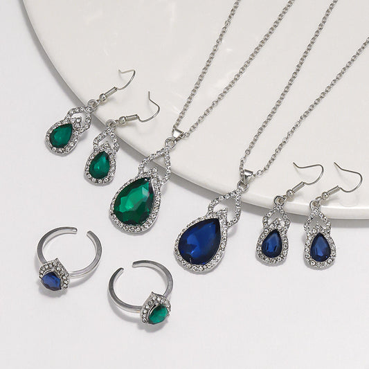 Light Luxury Zircon Necklace Earrings Open Ring Jewelry Suit